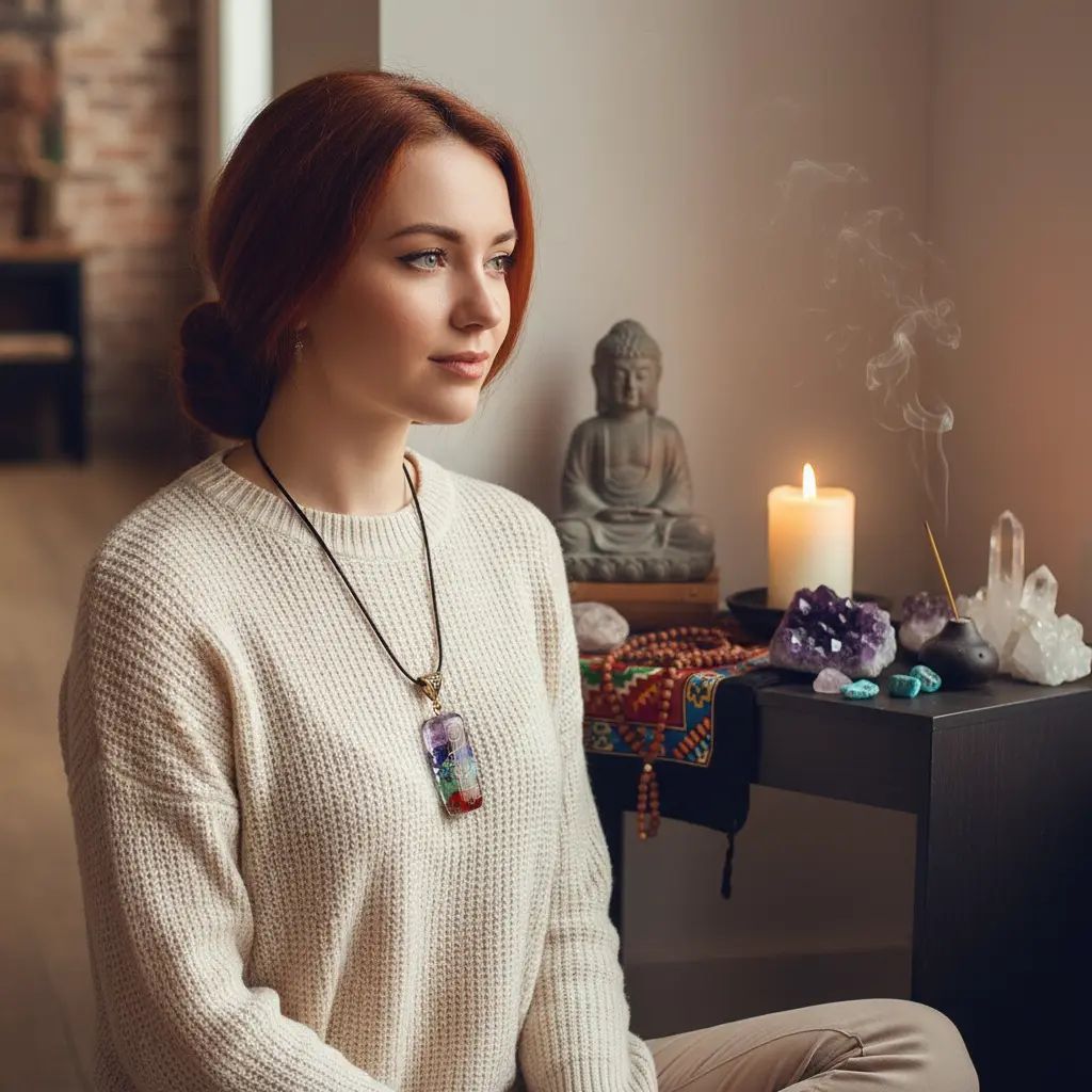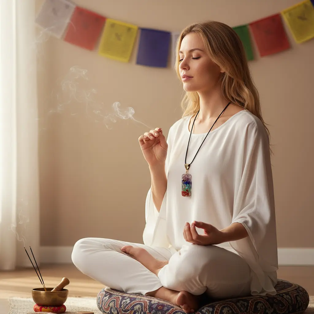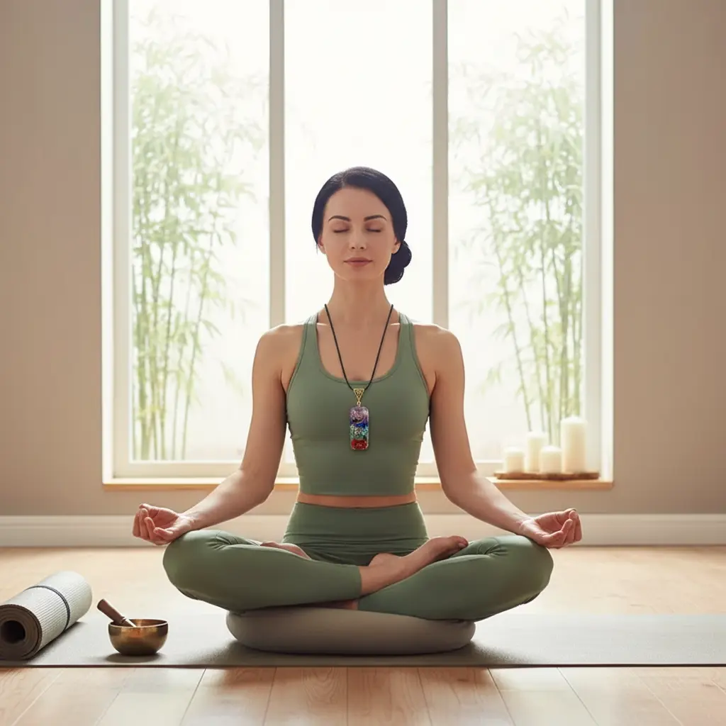 Chakra Orgonite Necklace_Yoga Meditation Scene