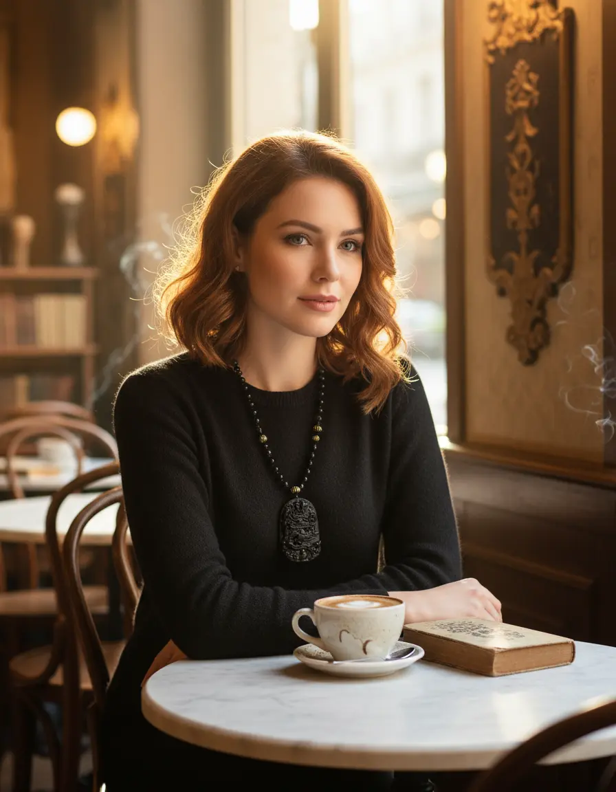 Black obsidian dragon necklace elegant cafe style