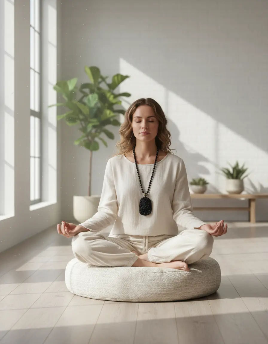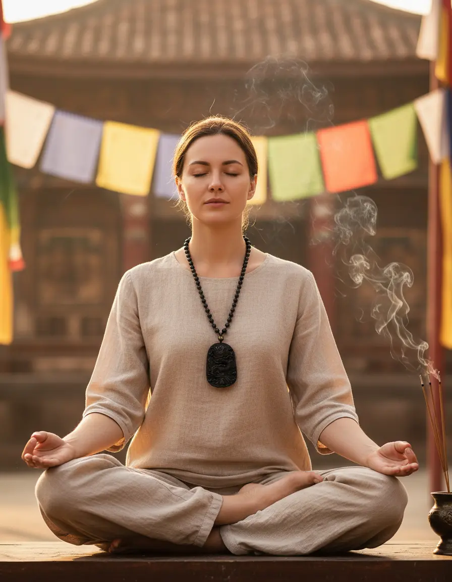 Black obsidian dragon necklace meditation practice