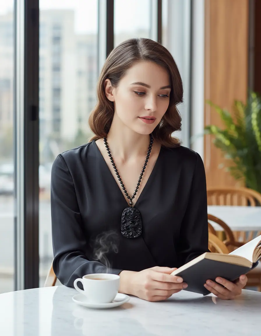 Black obsidian dragon necklace modern lifestyle