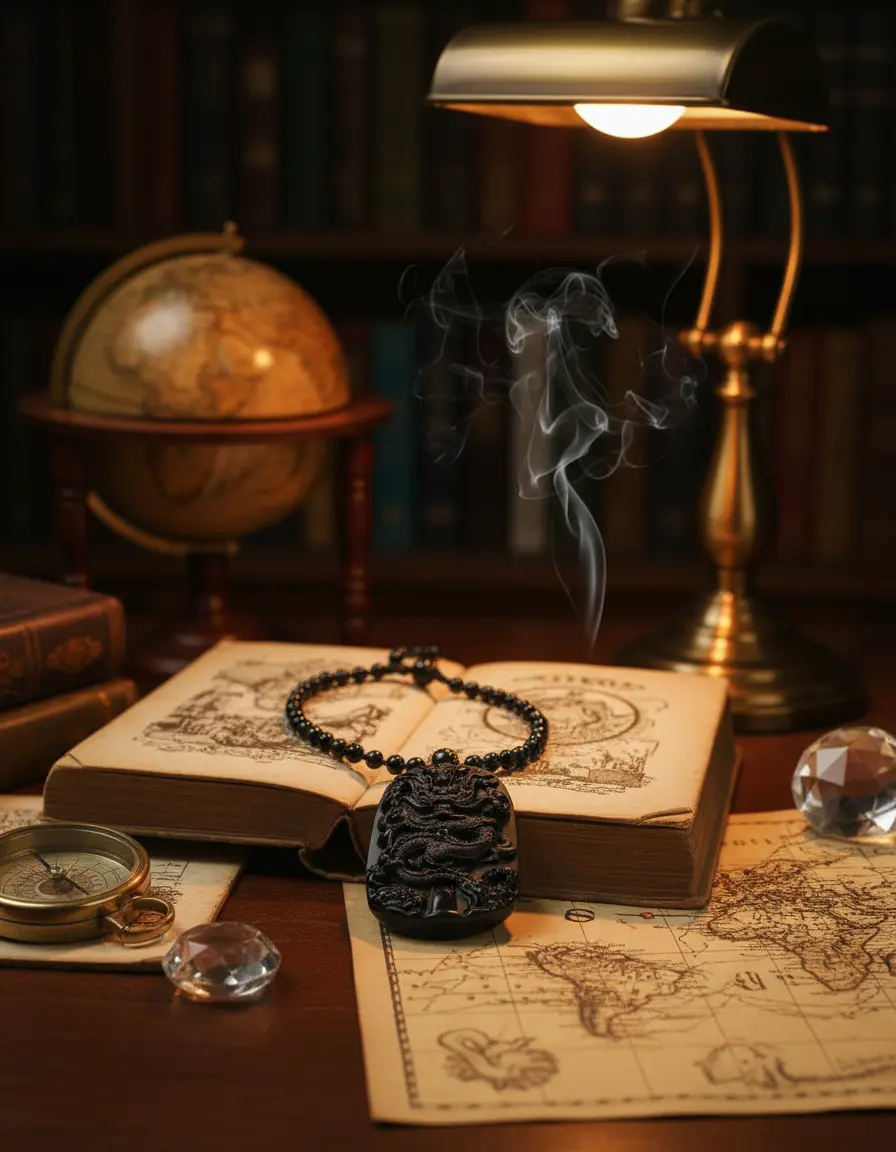 Obsidian dragon pendant ancient wisdom setting