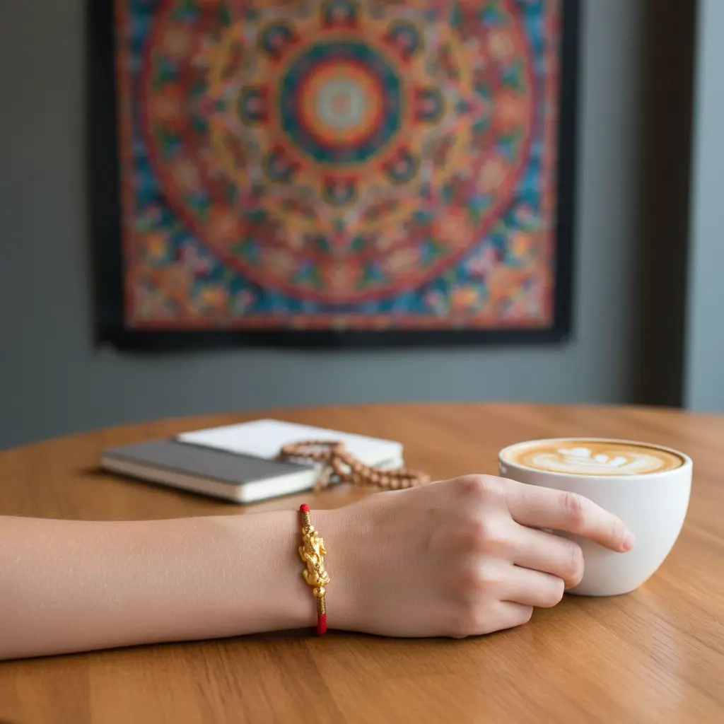 Pixiu good luck bracelet outdoor picnic lifestyle scene