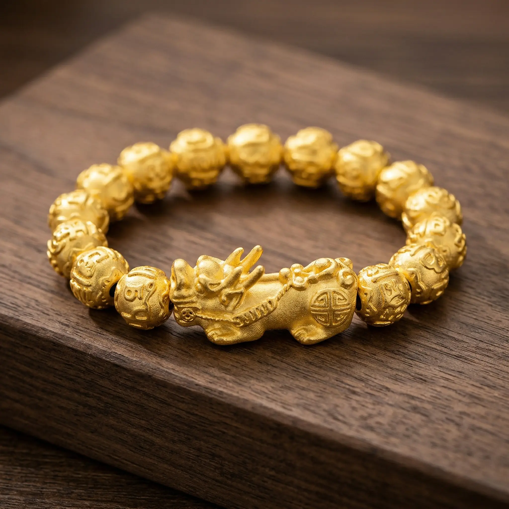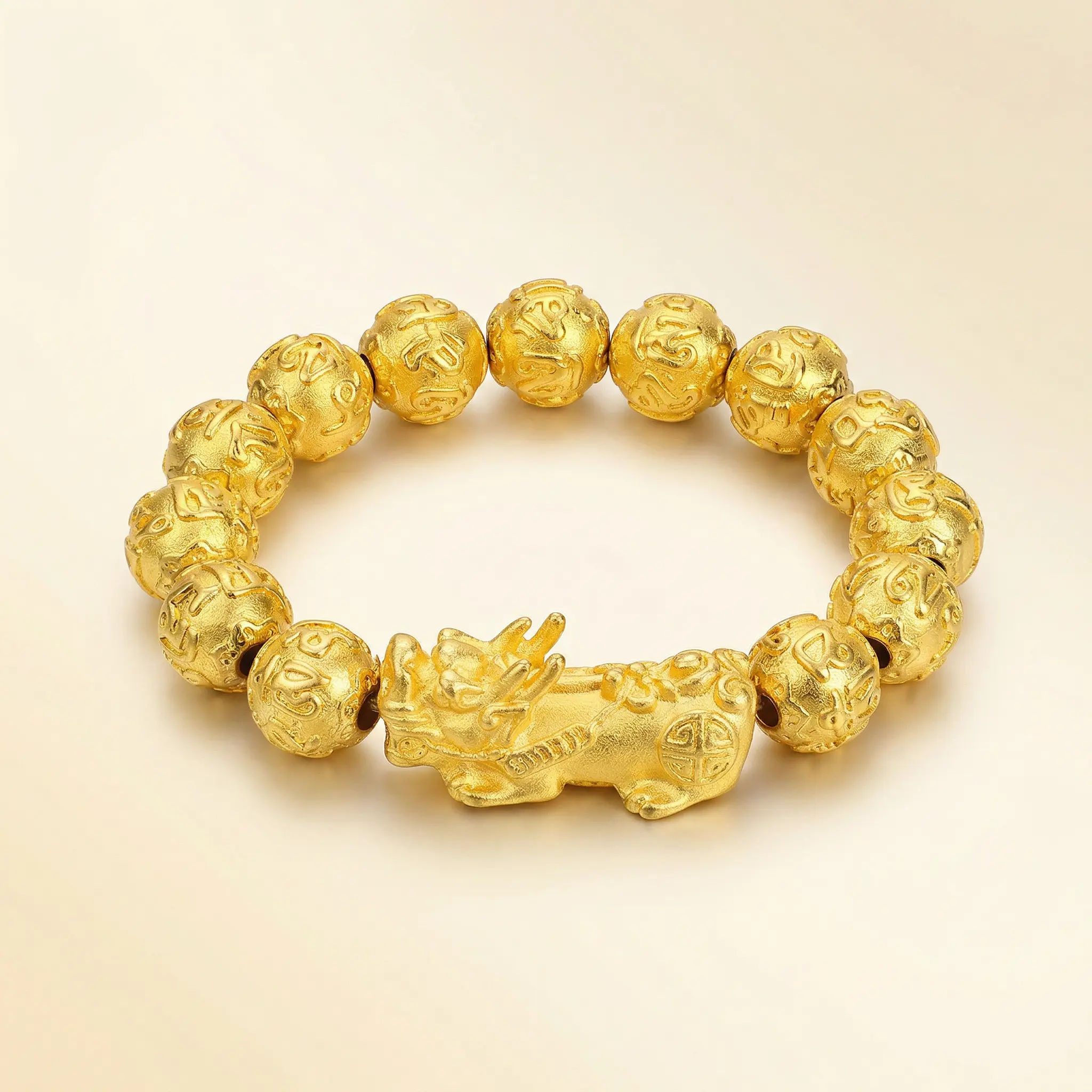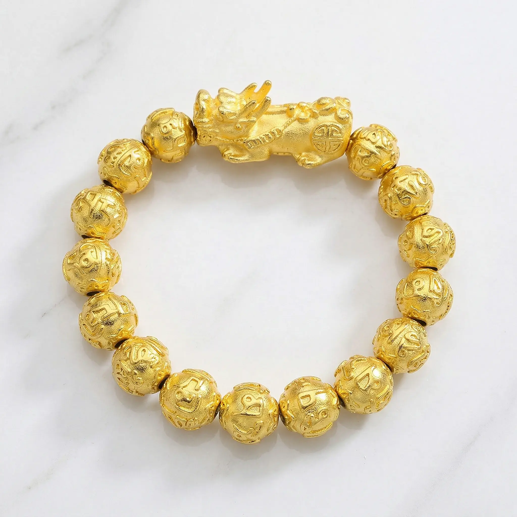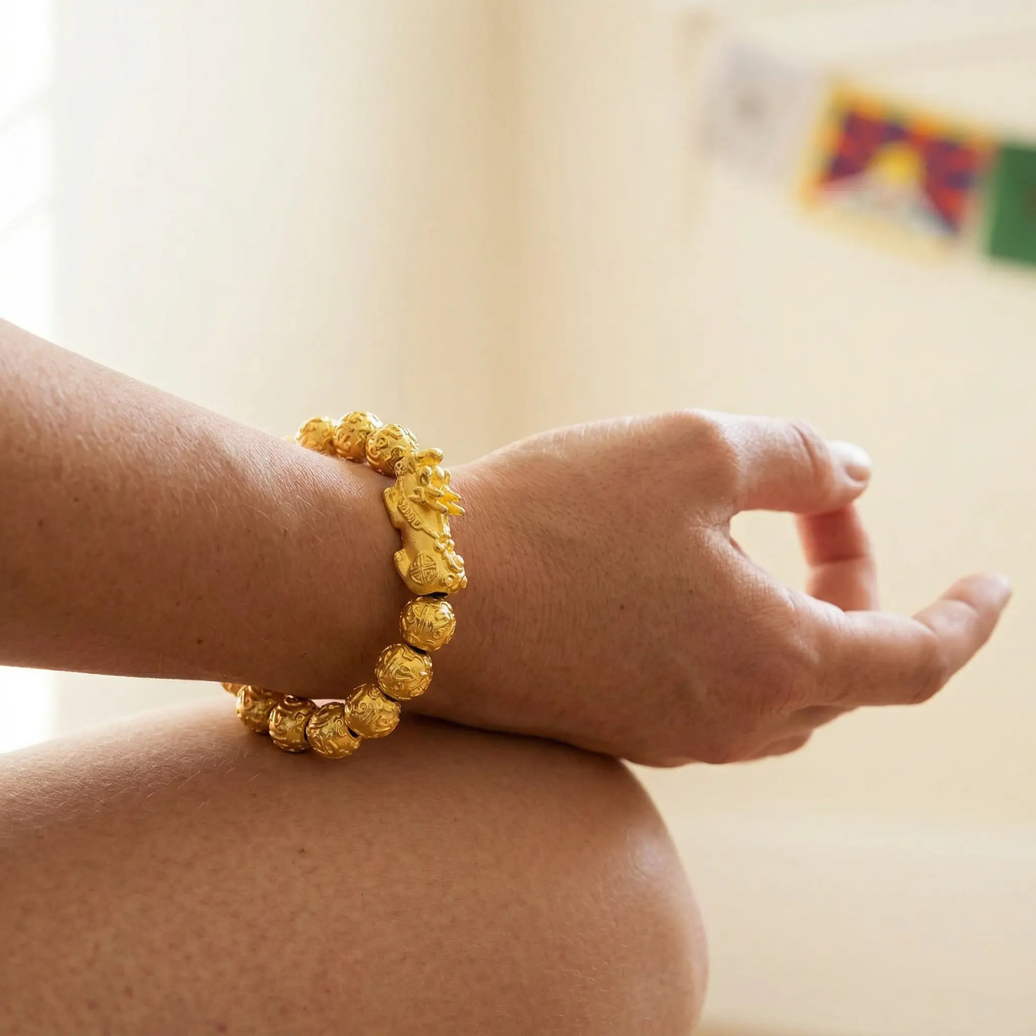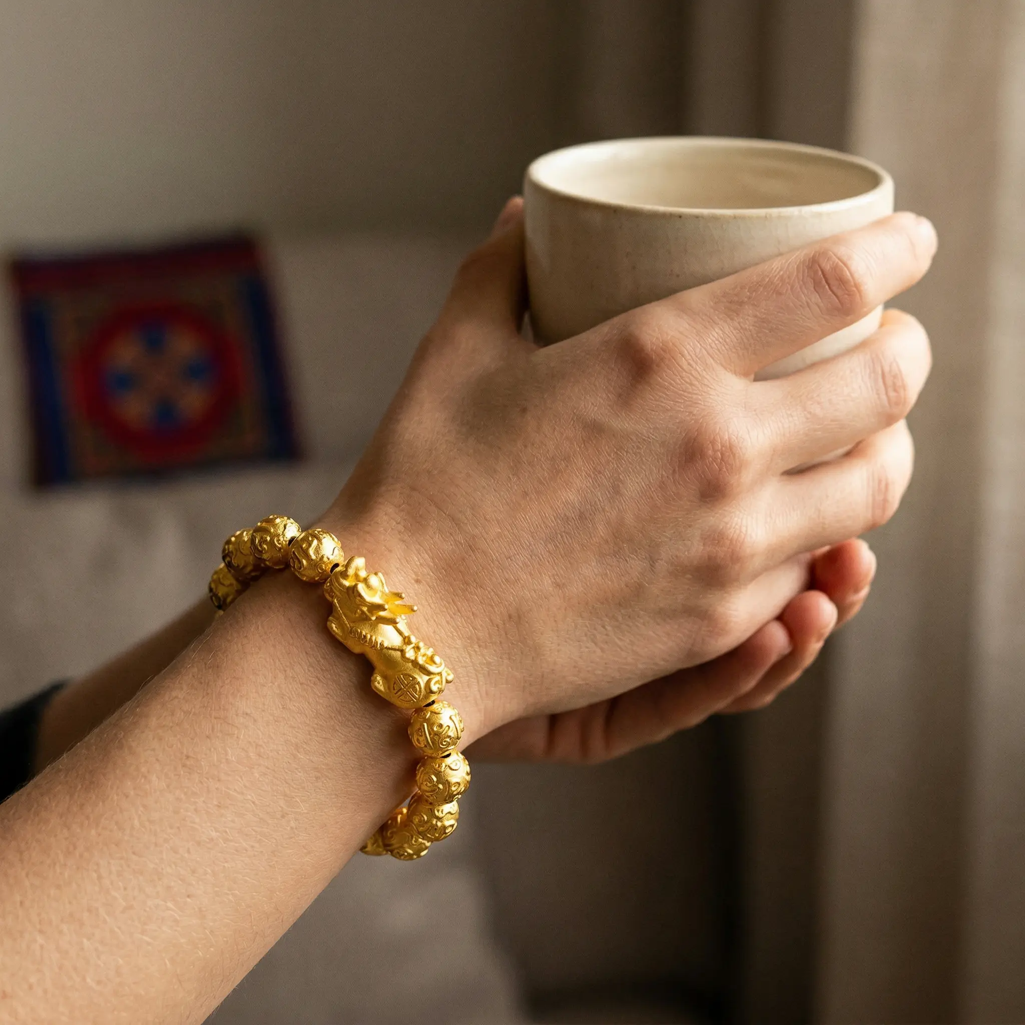 Gold Pixiu Wealth Mantra Bracelet – Attract Fortune