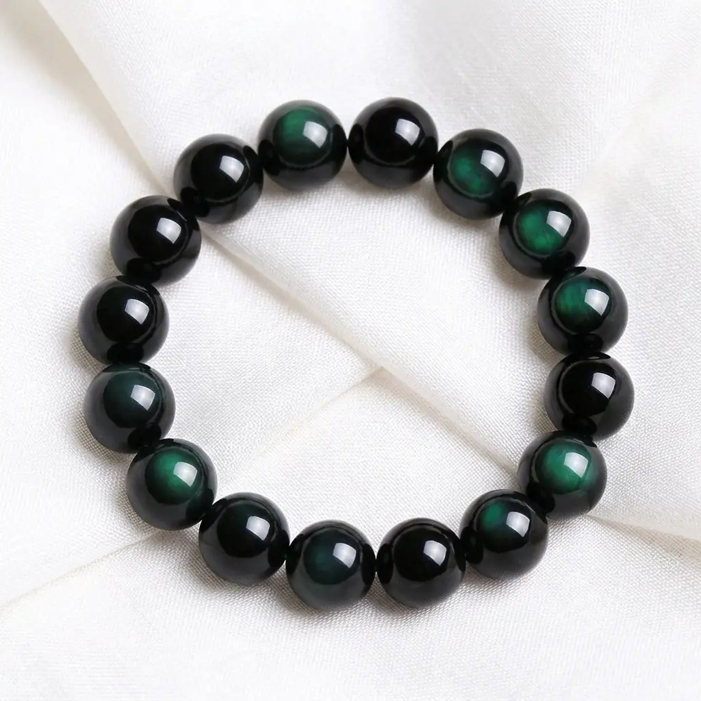 Green Eye Obsidian Healing Bracelet — Stretchable Natural Rainbow Obsidian