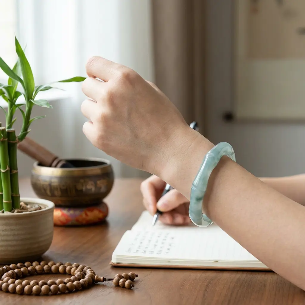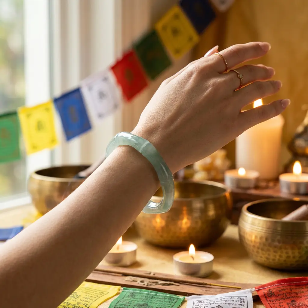 Jade wealth ring buddhist altar tea ceremony healing crystals