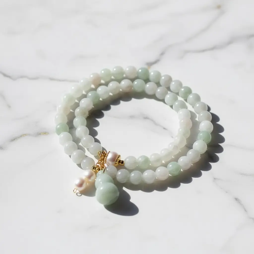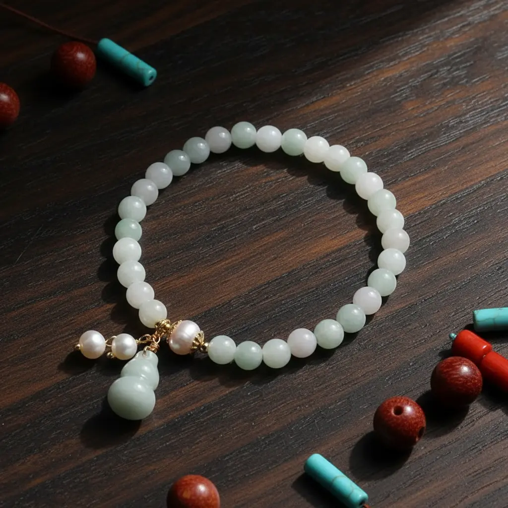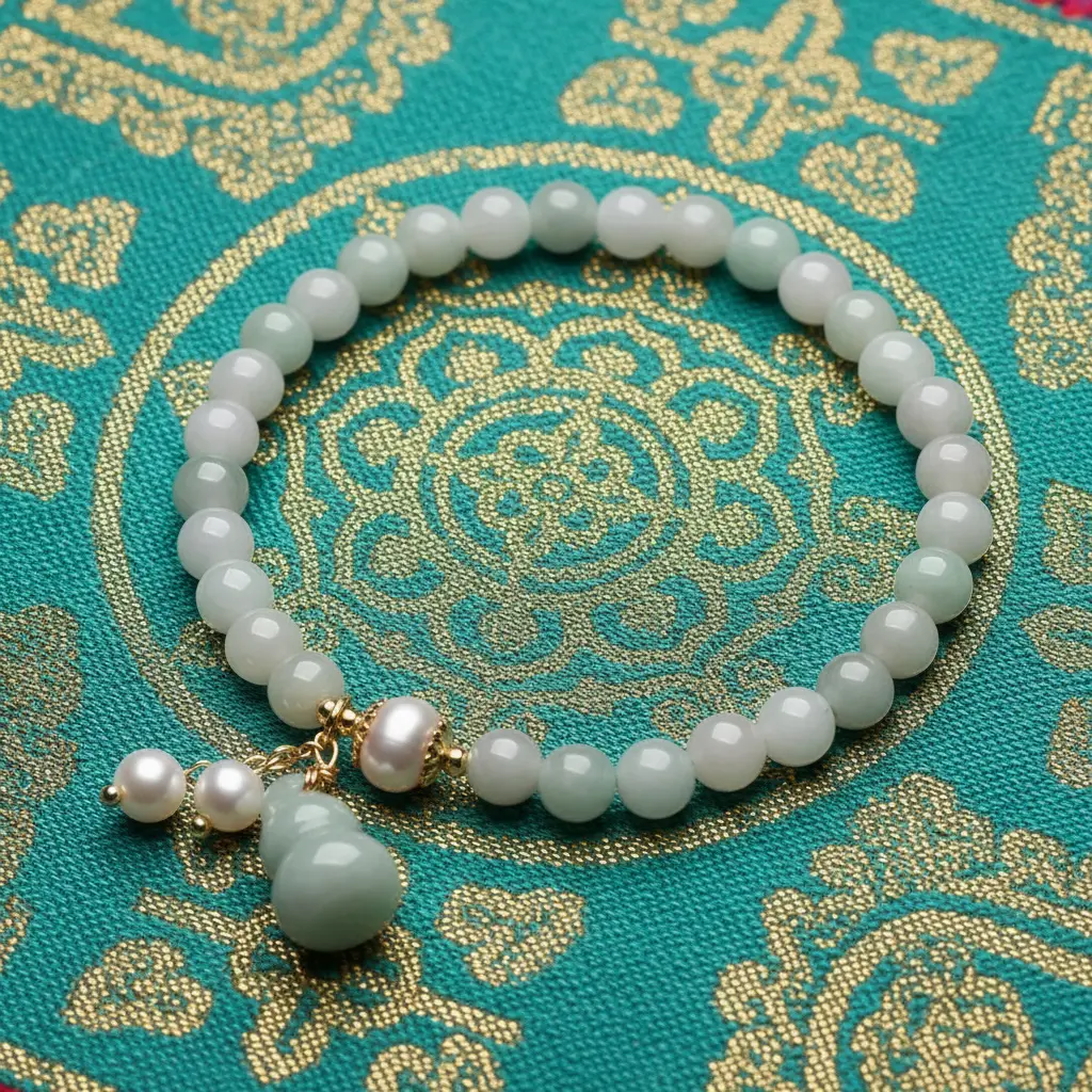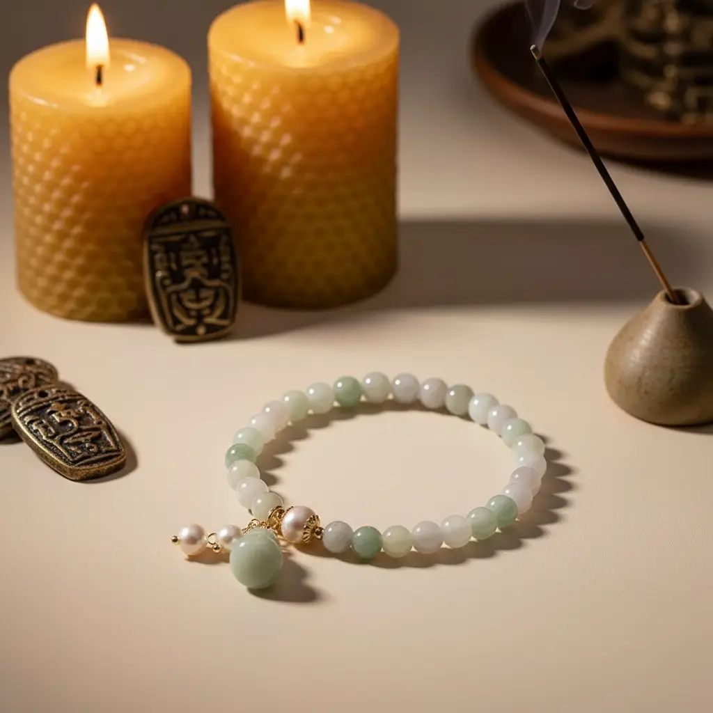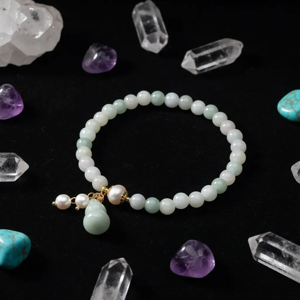 Jade wu lou bracelet with pearls in candle and incense ambience​