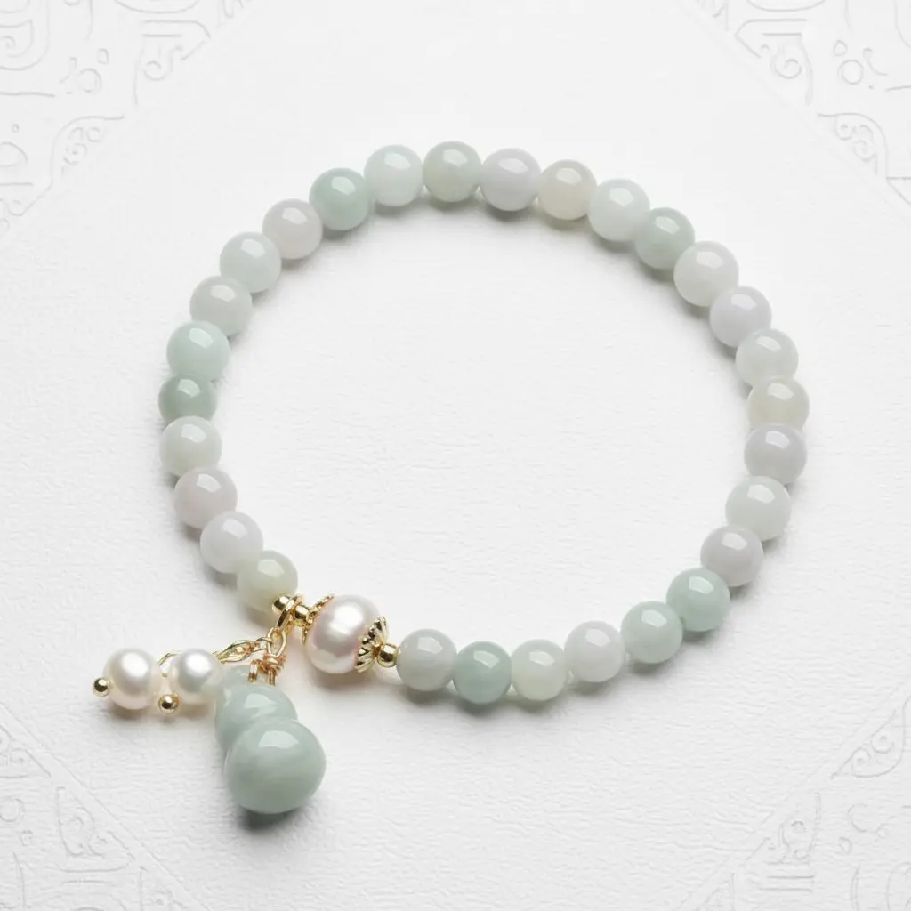 Jade wu lou gourd bracelet with pearl charms on marble​