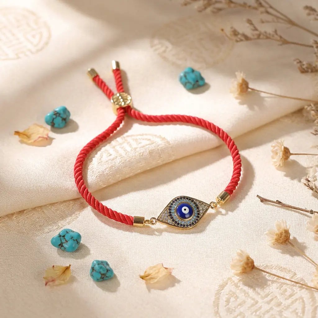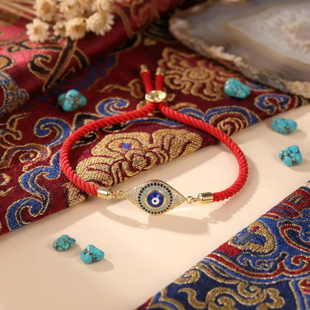 The eye charm sparkles with tiny cubic zirconia stones. Gold-tone copper adds a touch of elegance. The twisted red rope cord feels soft against your skin. You can wear this bracelet with any outfit—casual or dressy.