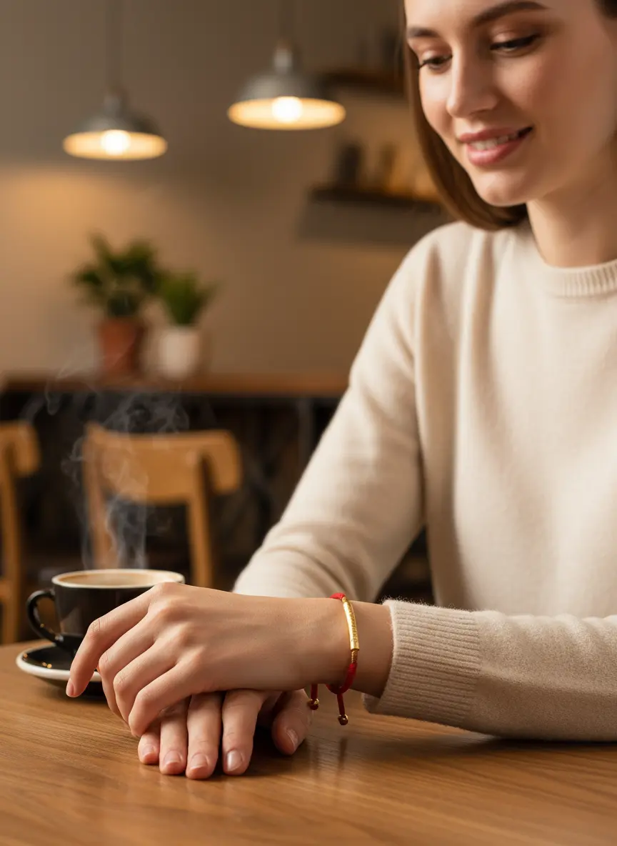 Red is considered the most auspicious color in many Eastern traditions. Wearing it close to your heart (on the left wrist) opens you to receive abundance, opportunities, and fortunate coincidences.